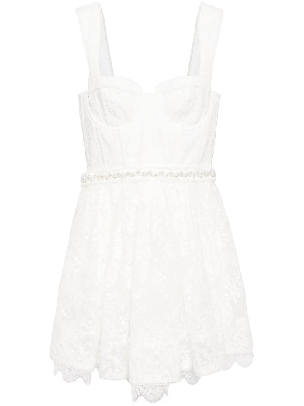 Hope floral-lace minidress Highlights - Off-white - Organza - Floral-lace detailing - Floral embroidery - Faux-pearl embellishment - Sweetheart neck - Rear zip fastening - Wide shoulder straps - Sleeveless - Flared skirt - Thigh-length - Scallop hem Imported Composition Lining: Nylon 52%, Polyester 48% Outer: Nylon 100% SIZE & FIT Model measurements Height 5 ft 10 in(1.77 m) Bust/Chest 30.7 in(78 cm) Hips 35.03 in(89 cm) Waist 23.62 in(60 cm) FittingInformation Designed for a close fit at the chest and waist with a loose fit at the hip The moulded cups offer shape and support Made from a midweight non-stretch fabric This piece fits true to size – take your usual size