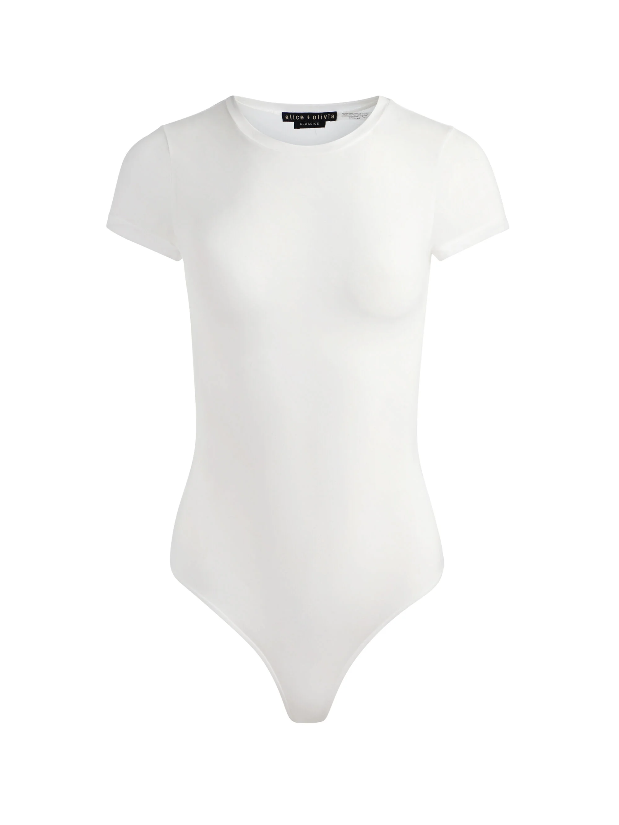 Meet the layering essential that’s anything but basic. The Hottie bodysuit is made from a super-soft, semi-sheer viscose jersey with a sleek, second-skin fit that’s ultra-flattering. Short cap sleeves show off those arms, while the thong back and snap closure keep the finish smooth and fuss-free. Wear it solo with a statement bra or layer it under blazers, dresses, or sheer knits-this one’s heavy in the rotation. DETAILS - Bodysuit - Soft viscose jersey - Fitted - Semi sheer - Short sleeves - Thong back with snap closure - 85% nylon, 15% elastane - Dry clean only - Imported FIT - Model is 5'10" and wearing a size XS - Length from the shoulder: 23" - Fits true to size, take your normal size