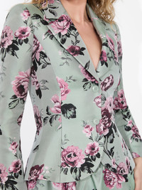 Reminiscent of the iconic bar jacket, our Iana has a sculptural, waist-defining shape. Molded curves are tailored from a luxury printed jacquard, giving you an hourglass shape. Sophisticated and timeless, wear it with cigarette pants and nothing underneath for an ultra-chic night-out look. DETAILS - Sculpted blazer - Printed jacquard - Hourglass shape - Fitted - 100% polyester - Dry clean only - Imported FIT - Model is 5'10" and wearing a size 2 - Length from the shoulder: 22 3/4" - Runs small, we recommend sizing up one size