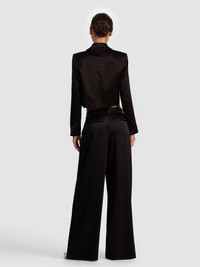 Ines is the ultimate closet chameleon: a cropped blazer with strong shoulders and a clean, boxy cut. Crafted from glossy satin, it’s structured enough to stand alone as a top yet easy to layer over dresses or trousers. The single-button closure keeps the lines sharp and minimal. Toss it on over denim for day or style it with matching suiting for night- it’s endlessly versatile. DETAILS - Cropped blazer - Toyo shiny satin - Boxy fit - Strong shoulders - Single button closure - 75% triacetate, 25% polyester - Dry clean only - Imported FIT - Model is 5'10" and wearing a size 0 - Length from the shoulder: 19 1/2" - Fits true to size, take your normal size