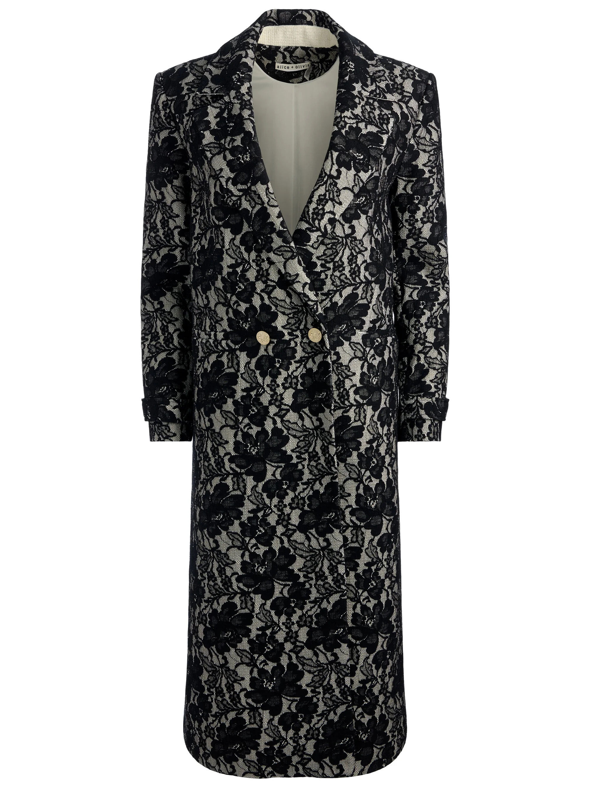 Bold outerwear that doesn’t compromise on versatility. Designed in novelty lace tweed with an oversized fit, rolled cuffs, and a tie belt, this coat brings drama while still allowing for easy wearability. The full-length silhouette offers warmth and impact in equal measure. A standout winter staple. DETAILS - Lace tweed trench coat - Notch collar - Adjustable belted waist - Oversized fit - Back vent - Full length - 62% polyester, 16% cotton, 12% nylon, 9% viscose, 1% acrylic - Dry clean only - Imported FIT - Model is 5'10" and wearing a size XS - Length from the shoulder: 49" - Fits true to size, take your normal size