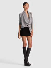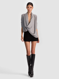 Our cult-favorite Jules Pullover is back by popular demand! Spun from feather-soft, 100% pure cashmere, this gorgeous grey sweater drapes fluidly to flatter every figure. Functional buttons at the neck let you style it in myriad ways-off the shoulder, as a cardigan, draped in front-you can’t go wrong. The curved hem skims the hips for a relaxed yet refined shape, making it effortless to half-tuck into denim or layer over slip skirts. Luxurious, timeless, and versatile-this is a forever favorite. DETAILS - Cashmere pullover - Relaxed fit - Draped front - Curved hem - Back button closures - 100% cashmere - Dry clean only - Imported FIT - Model is 5'10" and wearing a size XS - Length from the shoulder: 28" - Fits true to size, take your normal size