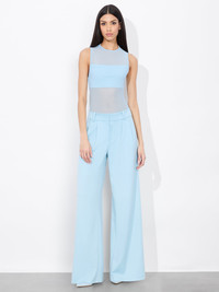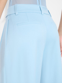 The Kennedy is our newest take on the perfect trouser. Destined to be your go-to, she's cut from a twill sateen and falls into the most flattering wide leg. Plus, we love the polished front pleats, hook and zipper closure and that gorgeous shade of mineral blue. This pant will make getting dressed extra-easy. DETAILS - High rise - Wide leg - Double front pleats - Belt loops - Hidden front hook and zipper closure - Twill sateen - 64% recycled polyester, 32% viscose, 4% elastane - Dry clean only - Imported FIT - Model is 5'10" and wearing a size 0 - Front rise: 11" - Inseam: 34" - Fits true to size, take your normal size