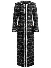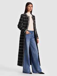 The Kidman, reimagined. Our best-selling cropped jacket silhouette is now elongated into a maxi-length coat. Crafted in boucle tweed with frayed trim, a sleek side slit, and strong shoulders, the Kidman mixes polish with edge. Wear it closed as a dramatic coat-dress or open over slim trousers- it’s a power piece you’ll return to again and again. DETAILS - Maxi jacket - Boucle tweed - Frayed trim - Side slit - Strong shoulders - Front hook closures - 80% polyester, 20% acrylic - Dry clean only - Imported FIT - Model is 5'10" and wearing a size XS - Length from the shoulder: 53" - Fits true to size, take your normal size