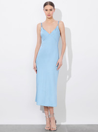 Every woman needs a slip dress she loves and our Kiro is elegant in its simplicity. Cut from a languid stretch silk-satin, it drapes fluidly over the body. Dainty braided straps finish the look. Lean into its 90s design with minimalist heels. DETAILS - Midi length - Braided straps - Back zipper closure - Matte viscose twill - 96% viscose, 4% elastane - Dry clean only - Imported FIT - Model is 5'10" and wearing a size 0 - Length from the shoulder: 51" - Fits true to size, take your normal size