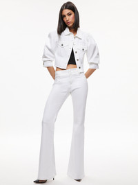 We left the hem of this cropped jacket intentionally raw for a look that feels like it has just enough edge. It includes a puffed sleeve, our best denim and buttons up the front. PRODUCT DETAILS - Denim jacket - Cropped - Puff sleeves - Collared - Button front closure - Front pocket - Raw hem - Total length: 18” - 100% cotton - Fits true to size, take your normal size - Aqua is wearing a size Small and her measurements are 5’10”, 32” bust, 23” waist, 34” hips - Dry clean only - Imported