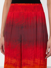 Soft, breezy, and unexpectedly sultry- these tie dye wide leg pants feature open front pleats that reveal the leg as you walk, creating an almost skirt-like effect. Crafted in our printed double viscose, they sit high on the waist with a smocked band that’s as comfy as it is flattering. The cropped length is designed to hit right at the ankle, perfect for showing off your favorite sandals. Easy to pack, effortless to style- your new vacay essential. DETAILS - Pull on pant - Open pleats - Digitally printed tie dye on double viscose - Wide leg - High rise - Ankle length - Smocked waistband - 100% viscose - Dry clean only - Imported FIT - Model is 5'10" and wearing a size XS - Front rise: 12 1/2" - Inseam: 30" - Fits true to size, take your normal size