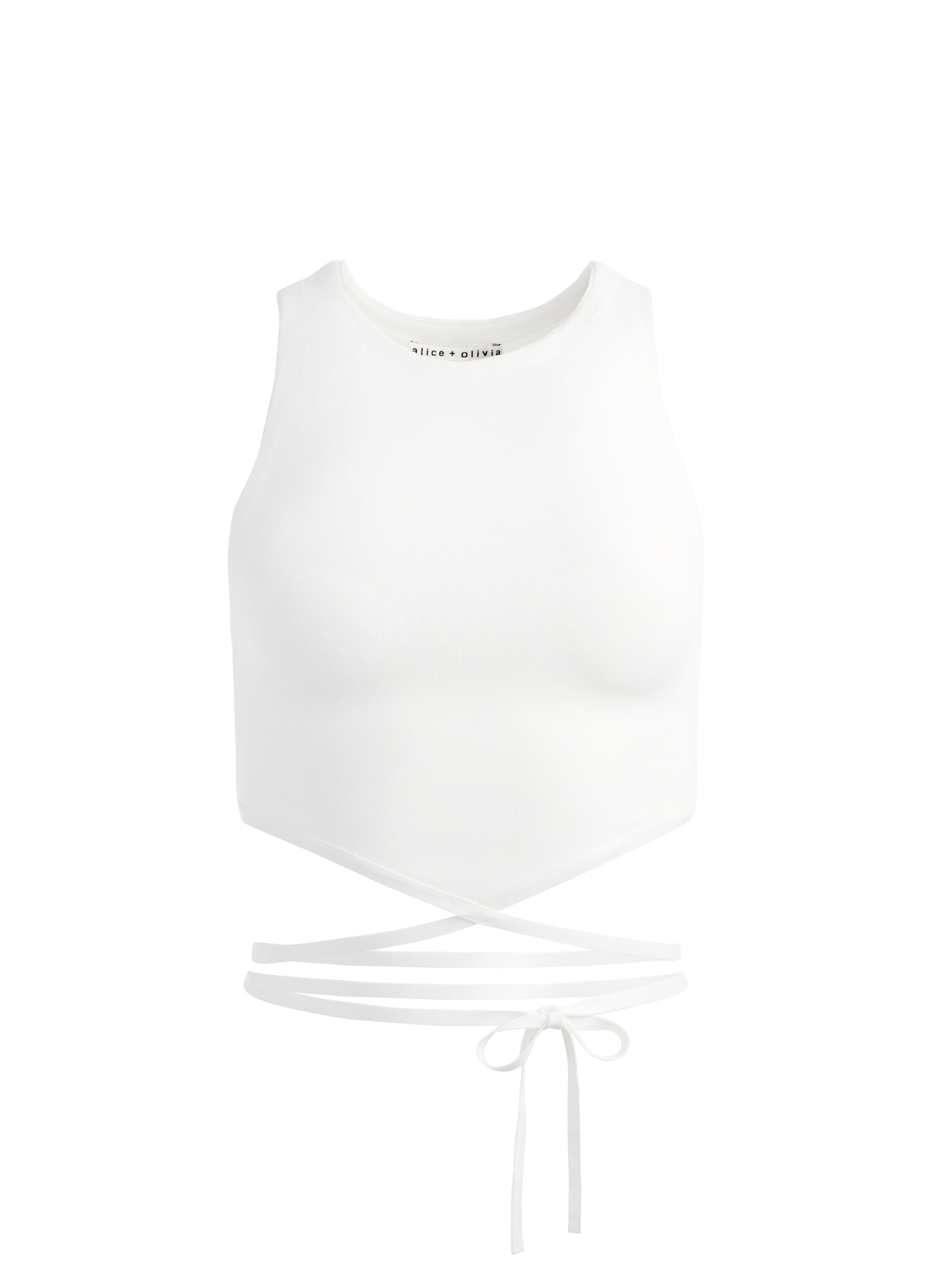 Hello sexy tank of our dreams: This includes a flattering high neckline, cropped fit, ties at the waist and a knit construction that hugs you right where you want it to. It's a compliment magnet, so expect to get lots. PRODUCT DETAILS - Tank top - Round neck - Crop top - Strappy bodice - Tie wrap around waist - Pointed hem - Total length: 16 1/2" - 100% dull rayon - Aqua is wearing a size Small and her measurements are 5’10”, 32” bust, 23” waist, 34” hips - Fits true to size, take your normal size - Dry clean only - Imported