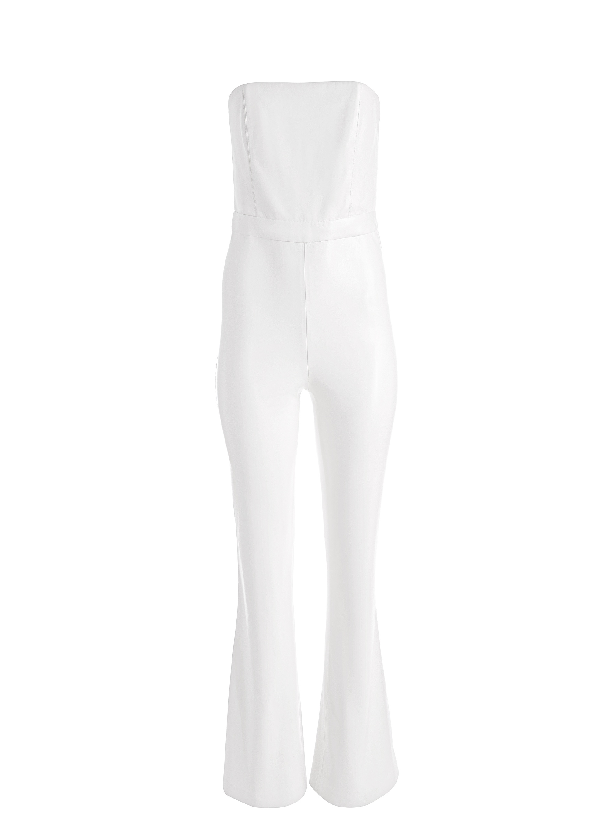 Talk about a one-piece to amp up your look. This is made from 100% vegan leather (but it looks oh-so-close to the real deal). With a tube top neckline, flared leg and long inseam, it's just so chic. PRODUCT DETAILS - Tube top - Exposed zipper back closure - Flare pant - 100% polyester (vegan) - Front rise: 10 7/8” - Back inseam: 15 7/8” - Inseam: 34 1/2” - Runs small, we recommend sizing up one size. - Julian is wearing a size 2 and her measurements are 5’9”, 32” bust, 24” waist, 34” hips - Dry clean only - Imported