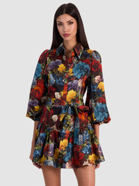 Feminine florals are what our dresses are all about and this mini is the new showstopper. It's made from a breathable printed poplin and constructed into an effortless button front shirtdress silhouette. Super girly and feminine, it's the perfect piece to throw-on-and-go when the sun comes out or pair with tights and a faux fur jacket on those cooler days. DETAILS - Mini shirtdress - Printed soft cotton poplin - Button front with hidden placket - Blouson sleeves - Adjustable tie waist - Tiered drop waist skirt - 97% cotton, 3% elastane - Dry clean only - Imported FIT - Model is 5'10" and wearing a size 0 - Length from the shoulder: 32 1/2" - Fits true to size, take your normal size