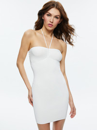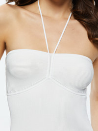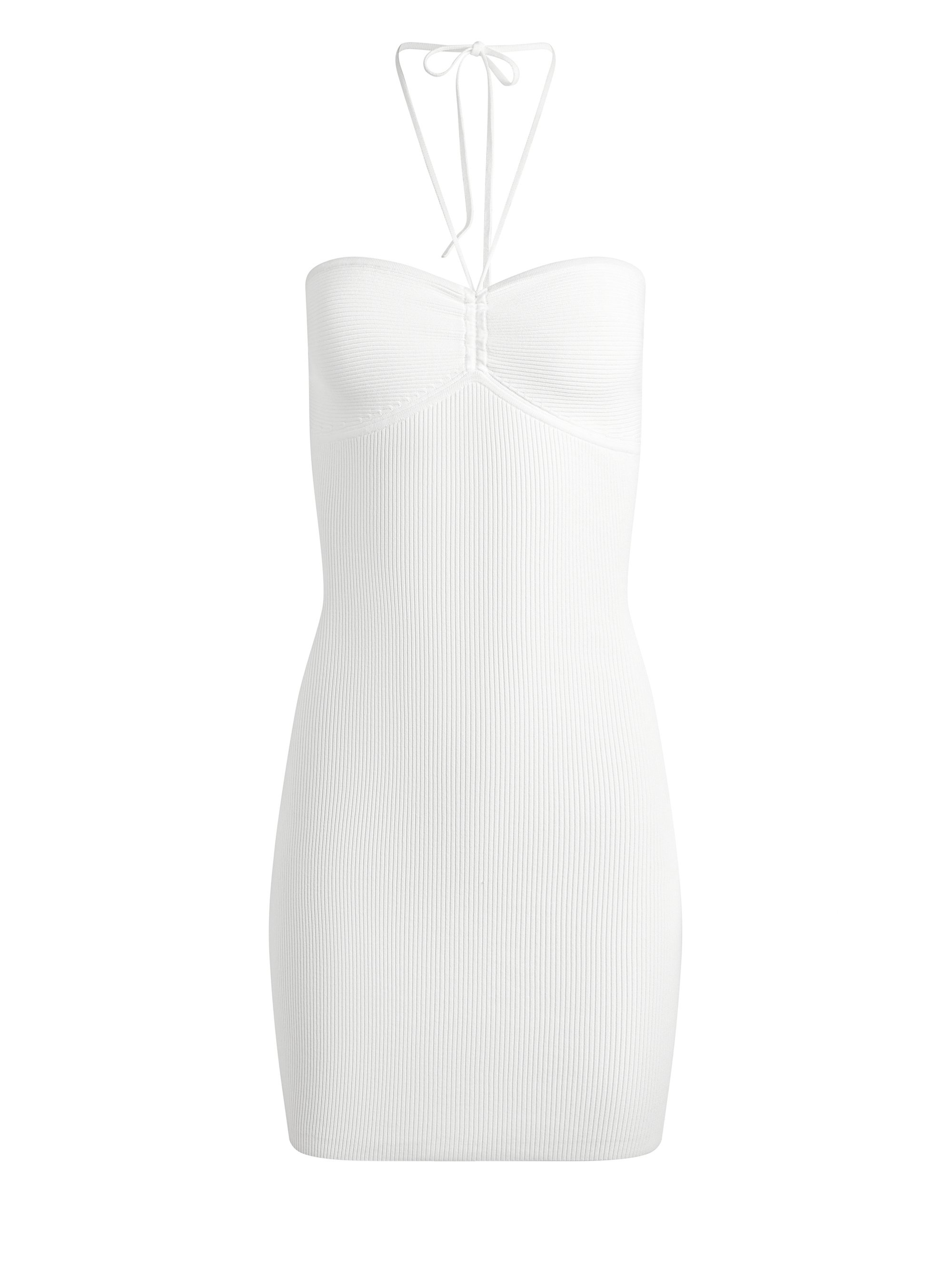 Linnie is ultra-flattering… just look at that ribbing that hugs in all the right places. Some more details to note: The sleeveless construction, mini length and the perfect amount of stretch (so it feels as good as it looks). DETAILS - Ribbed knit dress - Mini length - Halter tie neck - Sleeveless - Bodycon fit - 86% viscose, 13% nylon, 1% elastane - Dry clean only - Imported FIT - Model is wearing a size Small and her measurements are 5’10”, 32” bust, 23” waist, 34” hips - Length from the shoulder: 34" - Fits true to size, take your normal size