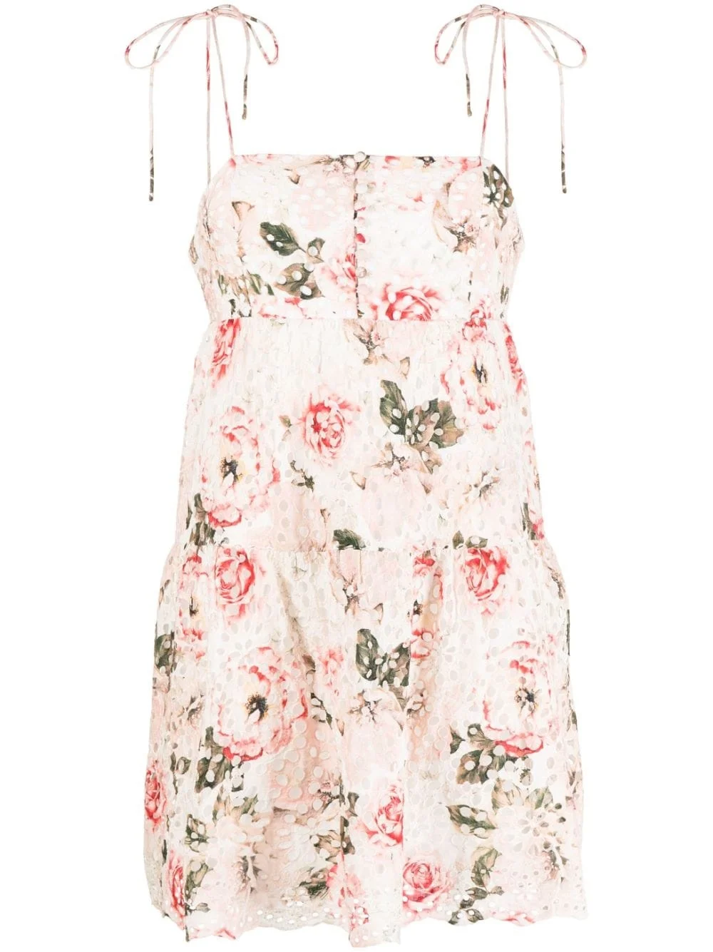 Lorelle Babydoll floral-print minidress Highlights - Light pink/multicolour - Cotton - All-over floral print - Eyelet detailing - Decorative button detailing - Flared - Square neck - Tie-fastening straps - Sleeveless - Rear zip fastening - Scallop hem Imported Composition Body: Cotton 100% SIZE & FIT Model measurements Height 5 ft 9 in(1.76 m) Bust/Chest 31.1 in(79 cm) Hips 35.03 in(89 cm) Waist 24.4 in(62 cm) FittingInformation Designed for a close fit at the chest and waist with a loose fit at the hip The adjustable drawstring means that you can adjust this piece’s fit to suit your comfort and preference Made from a midweight non-stretch fabric This piece fits true to size – take your usual size Washing instructions Dry Clean Only