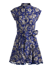 This lightweight shirt dress keeps the classic button down front and collared neckline you know and love, but adds a breezy skirt and tasseled hem for movement. Soft cotton poplin makes it breathable, while the hidden placket and subtle print keep it refined. It’s your everyday uniform- upgraded. DETAILS - Mini shirt dress - Printed soft poplin - Mock neck - Cap sleeves - Button down with hidden placket - Adjustable tie waist - Tasseled hemline - 97% cotton, 3% elastane - Dry clean only - Imported FIT - Model is 5'10" and wearing a size 0 - Length from the shoulder:34 1/2" - Fits true to size, take your normal size