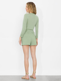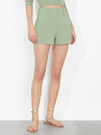 We took one of our best-selling pant silhouettes and crafted her in a new version for the warmer months. Reintroducing the Mame -she has the same flattering fit you know and love, now in a tailored short to show off those legs. Crafted in a lightweight cotton sateen, she's the perfect pairing piece to add to your rotation all spring and summer. DETAILS - Mini shorts - Luxe cotton sateen - High rise - Double button front closure - Wide waistband - 74% cotton, 23% nylon, 3% elastane - Dry clean only - Imported FIT - Model is 5'10" and wearing a size 0 - Front rise: 11 1/4" - Inseam: 3" - Fits true to size, take your normal size