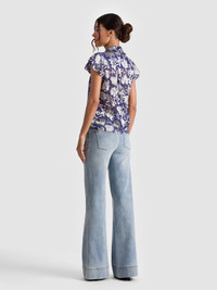 In full bloom, this Martel blouse is brought to life with painterly florals and a satin silk burnout that catches the light with every move. The soft, romantic print pairs beautifully with the blouse’s timeless shape-fluttery cap sleeves, a crisp collar, and just the right amount of drape. Feminine, polished, and a little flirty, it’s the kind of piece that dresses up denim or floats effortlessly over a fluid skirt. DETAILS - Button down - Printed silk satin burnout - Flutter sleeves - Collared - 63% viscose, 37% silk - Dry clean only - Imported FIT - Model is 5'10" and wearing a size XS - Length from the shoulder: 23" - Fits true to size, take your normal size