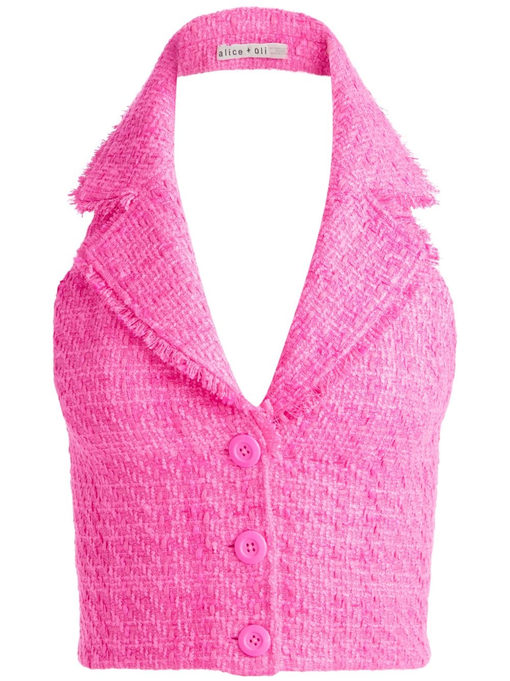 Meri Blazer top Highlights - Pink - Front button fastening - Halterneck - Sleeveless Imported Composition Polyester 63%, Acrylic 37%