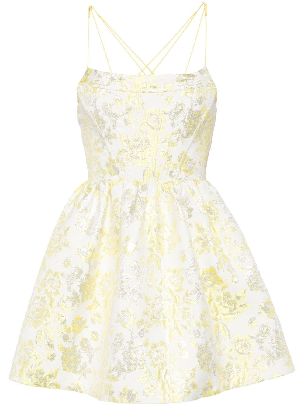 Nat mini dress Highlights - White/yellow - Recycled polyester blend - All-over floral embroidery - Gathered detailing - Crossover shoulder straps - Round neck - Rear zip fastening - Elasticated smocked panel at back Imported Composition Recycled Polyester 95%, Polyester 74%, Viscose 25%, Elastane 5%, Nylon 1% SIZE & FIT Model measurements Height 5 ft 9 in(1.76 m) Bust/Chest 31.49 in(80 cm) Hips 36.61 in(93 cm) Waist 24.4 in(62 cm) FittingInformation Designed for a close fit at the chest and waist with a loose fit at the hip Made from a midweight non-stretch fabric This piece fits true to size – take your usual size