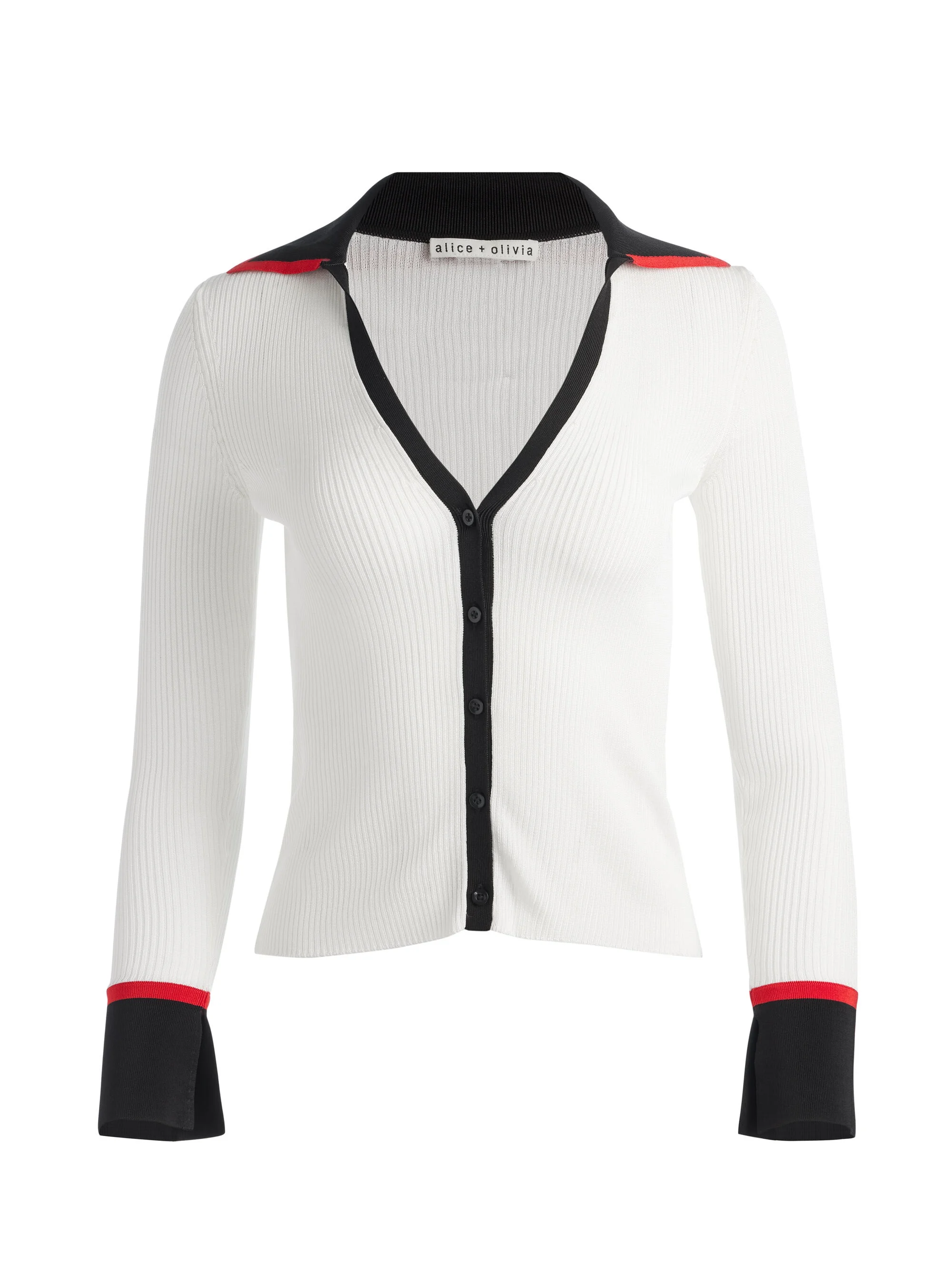 Our Nealie polo cardigan is a true essential. It has a slim fit and flattering construction that molds seamlessly to your figure. Its sharp polo collar gives it a slight Seventies feel. Ultra-versatile and layer-able, you’ll reach for it again and again (and again!). DETAILS - Colorblocked cardigan - Ribbed knit - Fitted - Button front - Slit cuffs - Collared - 98% viscose, 2% elastane - Dry clean only - Imported FIT - Model is 5'10" and wearing a size Small - Length from the shoulder: 20" - Fits true to size, take your normal size