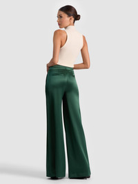 Tailoring meets cool-girl ease. The Nessi is cut in a relaxed, baggy shape with a flattering high waist and gorgeous emerald green satin. The vibe is menswear-inspired, but the finish is distinctly feminine- polished, powerful, and just a little playful. Dress it up with a blouse or down with a tee; we love her both ways. DETAILS - Satin trouser - Baggy fit - High rise - Belt loops - Wide waistband - Front hook and zipper closure - 75% triacetate, 25% polyester - Dry clean only - Imported FIT - Model is 5'10" and wearing a size 0 - Front rise: 10 1/2" - Inseam: 34 1/2" - Fits true to size, take your normal size