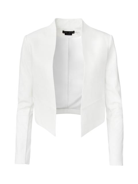 Our bestselling jacket, now in smooth black leather. It's a true in-between dream, the perfect weight and texture for cool temps. DETAILS - Long sleeve - Asymmetrical hem - 100% leather - Length: 21 1/2” from shoulder - Runs large, we recommend sizing down one size - Meghan is wearing a size small and her measurements are 5’10”, 32” bust, 23” waist, 34” hips - Dry clean only - Imported