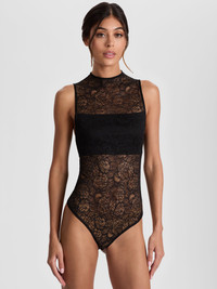 The bodysuit that started it all-now reimagined in floral stretch lace. Nichol is sleek, sculpted, and semi-sheer with a high neck and lined bandeau for just the right amount of coverage. The thong snap bottom keeps it smooth under everything. Wear it with trousers, denim, or a bold lip-it’s a confidence piece. DETAILS - Lace bodysuit - Sleeveless - High neck - Semi-sheer with bandeau lining - Thong bottom with snap closure - Back zipper closure - 88% nylon, 12% elastane - Dry clean only - Imported FIT - Model is 5'10" and wearing a size XS - Length from the shoulder: 24" - Fits true to size, take your normal size