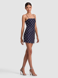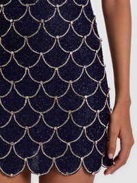 Introducing After Five, our new cocktail dressing collection--because it's 5 o'clock somewhere. The Nina scallop mini combines layers of beaded mesh with a crystal-embroidered pattern that ripples across the body. The result? A soft, light-catching texture that feels fluid and otherworldly. With its satin straps and shimmer, it's a subtle statement. Equal parts fantasy and finesse, it's a modern mermaid moment. DETAILS - Mini dress - Beaded mesh - Crystal embellished scallop pattern - Nylon satin straps - Inner non-slip silicone grip - Hidden back zipper closure - 91% nylon, 9% elastane - Dry clean only - Imported FIT - Model is 5'10" and wearing a size 0 - Length from the shoulder: 32 1/2" - Fits true to size, take your normal size