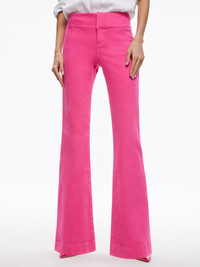 Our signature bootcut pant, now in colored denim that feels perfectly tailored for anything (office or after hours). The wide waistband is incredibly flattering (not that you need any help). PRODUCT DETAILS - Denim - Mid rise - Bootcut - Full length - Wide waistband - Back pocket detailing - Front zipper and hidden hook and eye closure - Front rise: 9 1/2” - Back rise: 15” - Inseam: 34 3/4” - 92% cotton, 6% elastomultiester, 2% elastane - Fits true to size, take your normal size. - Emmah is wearing a size 24 and her measurements are 5'9.5", 31" bust, 23" waist, 34.5" hip - Dry clean - Imported