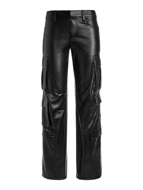 The pant that built a following. Our cult-favorite Olivia is back- this time in soft black vegan leather with a cool-girl wide leg silhouette. The ultra-flattering fit features a low rise, wide waistband, and flare that elongates the leg like magic. A must-have for fall statement dressing. DETAILS - Vegan leather pant - Low rise - Wide leg - Wide waistband - Front hook and zipper closure - 100% polyurethane - Dry clean only - Imported FIT - Model is 5'10" and wearing a size 0 - Front rise: 8 3/4" - Inseam: 34 1/2" - Fits true to size, take your normal size