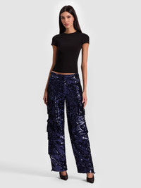 Introducing After Five, our new cocktail dressing collection--because it's 5 o'clock somewhere. And who says sequins can't be utilitarian? The Olympia pant turns the cargo silhouette into a full-on statement with tonal sequins and an adjustable drawcord at the ankle that lets you switch from wide-leg to cinched. Mid-rise with an easy, baggy fit, it walks the line between daytime ease and nighttime glamour. Pair with its matching Quincy blazer for a head-to-toe moment or a simple tank for cool contrast. DETAILS - Sequined cargo pant - Embellished stretch georgette - Wide leg - Mid rise - Baggy fit - Adjustable drawcord hem - Pocket detailing - 95% polyester, 5% elastane - Dry clean only - Imported FIT - Model is 5'10" and wearing a size - Length from the shoulder: - Fits true to size, take your normal size
