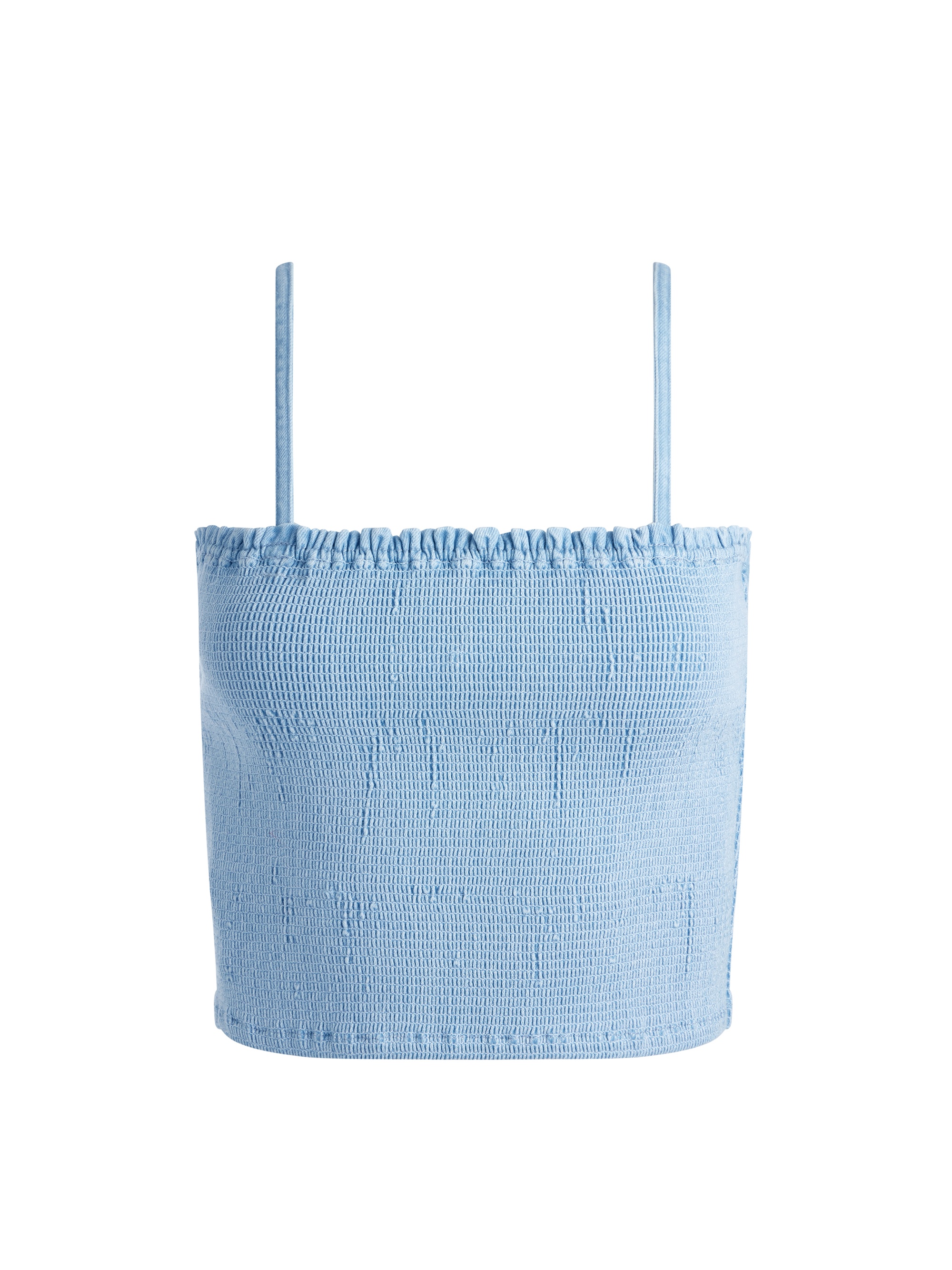 This feminine top is crafted in goes-with-everything denim and includes smocking for an adjustable fit, a sleeveless design and straight neckline. We especially love it paired with more denim. DETAILS - Denim crop top - Smocked - Sleeveless - Straight neck - Exposed zipper back closure - 86% cotton, 14% lyocell - Dry clean only - Imported FIT - Model is wearing a size Small and her measurements are 5’10”, 32” bust, 23” waist, 34” hips - Length from the shoulder: 16 3/4" - Fits true to size, take your normal size