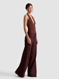 Simple, sexy, cool - our Pippa bodysuit belongs in every woman’s closet. Its smoothing, sculpting bodice is shaped in an alluring deep v-neck for the most flattering fit. Cut from a soft knit viscose with a hint of stretch, it's as comfy as it is cute. a+o styling tip: wear your hair up to show off the cute tie back closure! DETAILS - Bodysuit - Deep V-neck - Thong back with snap closure - Smooth viscose jersey - Halter with tie back closure - 90% viscose, 10% elastane - Dry clean only - Imported FIT - Model is 5'10" and wearing a size XS - Length from the shoulder to hip seam: 23" - Fits true to size, take your normal size