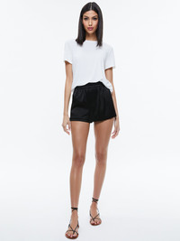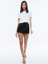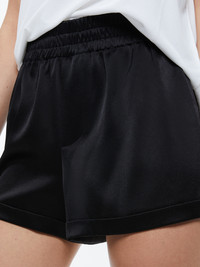 A pull-on boxer short is exactly what we want to wear when the weather heats up. This one includes a mini length, cuffed construction, low rise and relaxed fit. In other words: It's perfectly right. DETAILS - Boxer shorts - Cuffed - Low rise - Elastic waistband - 75% triacetate, 25% polyester - Dry clean only - Imported - Sustainable FIT - Model is wearing a size Small and her measurements are 5’10”, 30” bust, 23” waist, 34” hip - Front rise: 12" - Inseam: 2 1/2" - Fits true to size, take your normal size