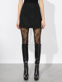 A perfect tweed mini skirt is a great way to take your wardrobe from cold weather into the warmer months. Just throw on Riley with a pair of tights and a cute sweater or jacket and you have an instant outfit that transcends seasons. DETAILS - Tweed - Clean waistband - Bordered trim - Back zipper closure - 63% polyester, 37% acrylic - Dry clean only - Imported FIT - Model is 5'10" and wearing a size 0 - Skirt length: 14 1/2" - Fits true to size, take your normal size