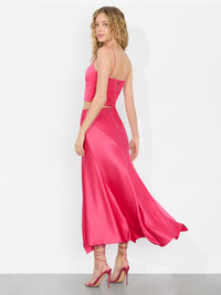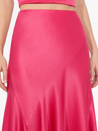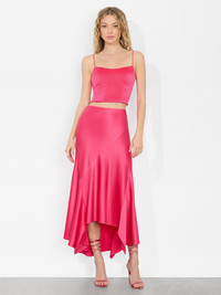 Sleek and fluid, this slip skirt is all about effortless chic. Cut from a silky fabric with asymmetric paneling, it skims the body beautifully before cascading into a soft, flared hem. The high-low silhouette adds a touch of drama, making it perfect for both day and night. Feminine, flattering, and endlessly versatile-this is the skirt you’ll reach for again and again. DETAILS - Slip skirt - Midi length - Asymmetric hem - Shiny satin toyo - Back zipper closure - 75% triacetate, 25% polyester - Dry clean only - Imported FIT - Model is 5'10" and wearing a size 2 - Skirt length: 38 1/2" - Fits true to size, take your normal size