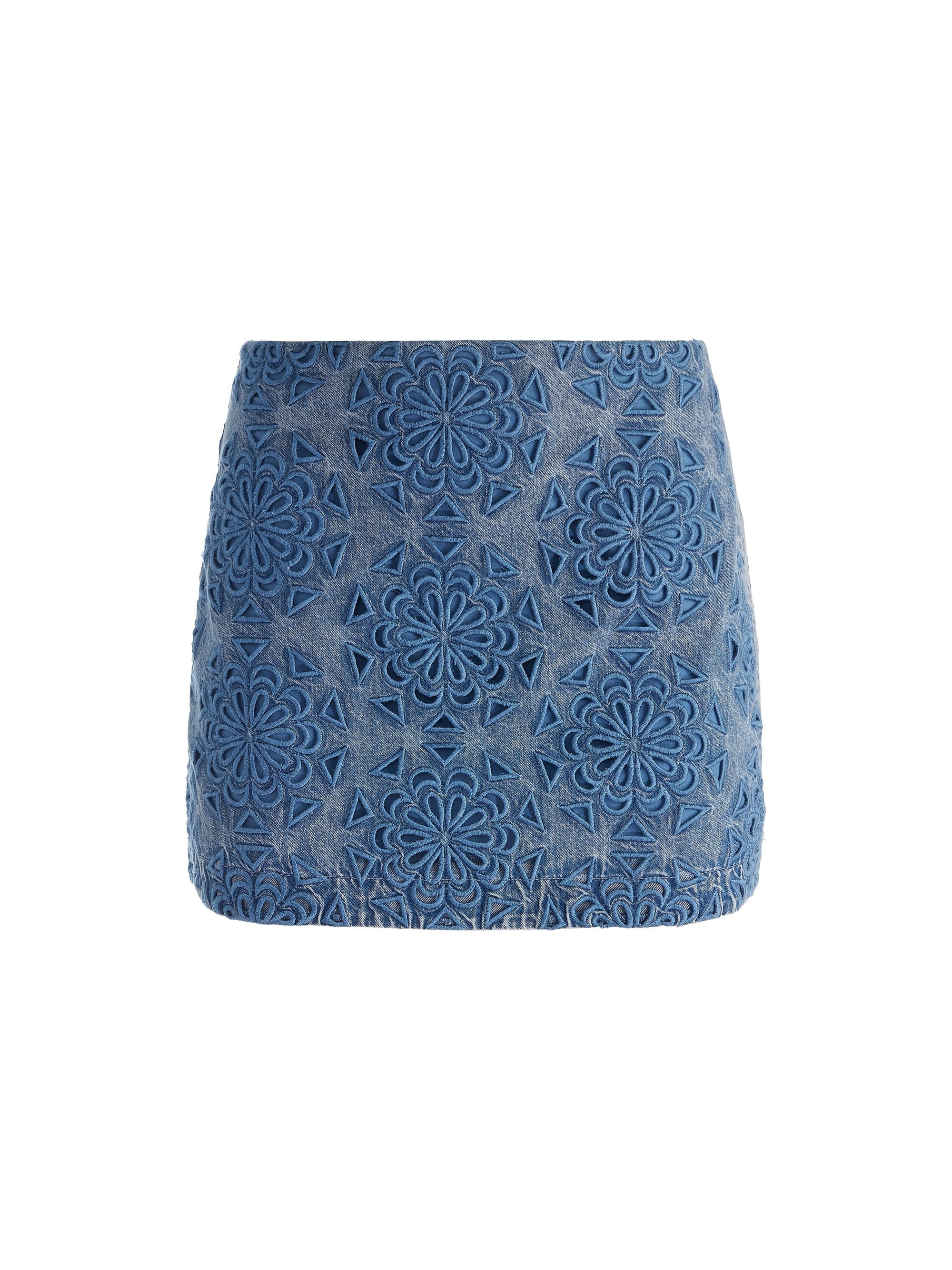 Small in size, big on impact. The Rubi skirt is a low-rise micro mini with intricate laser-cut detailing that turns everyday denim into a conversation piece. Vintagewash and slightly rebellious, it channels early 2000s attitude with a modern twist -ideal for festivals, city strolls, or anytime you’re dressing to be seen. DETAILS - Mini skirt - Low rise - Lasercut denim - Back zipper closure - 100% cotton - Dry clean only - Imported FIT - Model is 5"10" and wearing a size 2 - Skirt length: 13" - Fits true to size, take your normal size