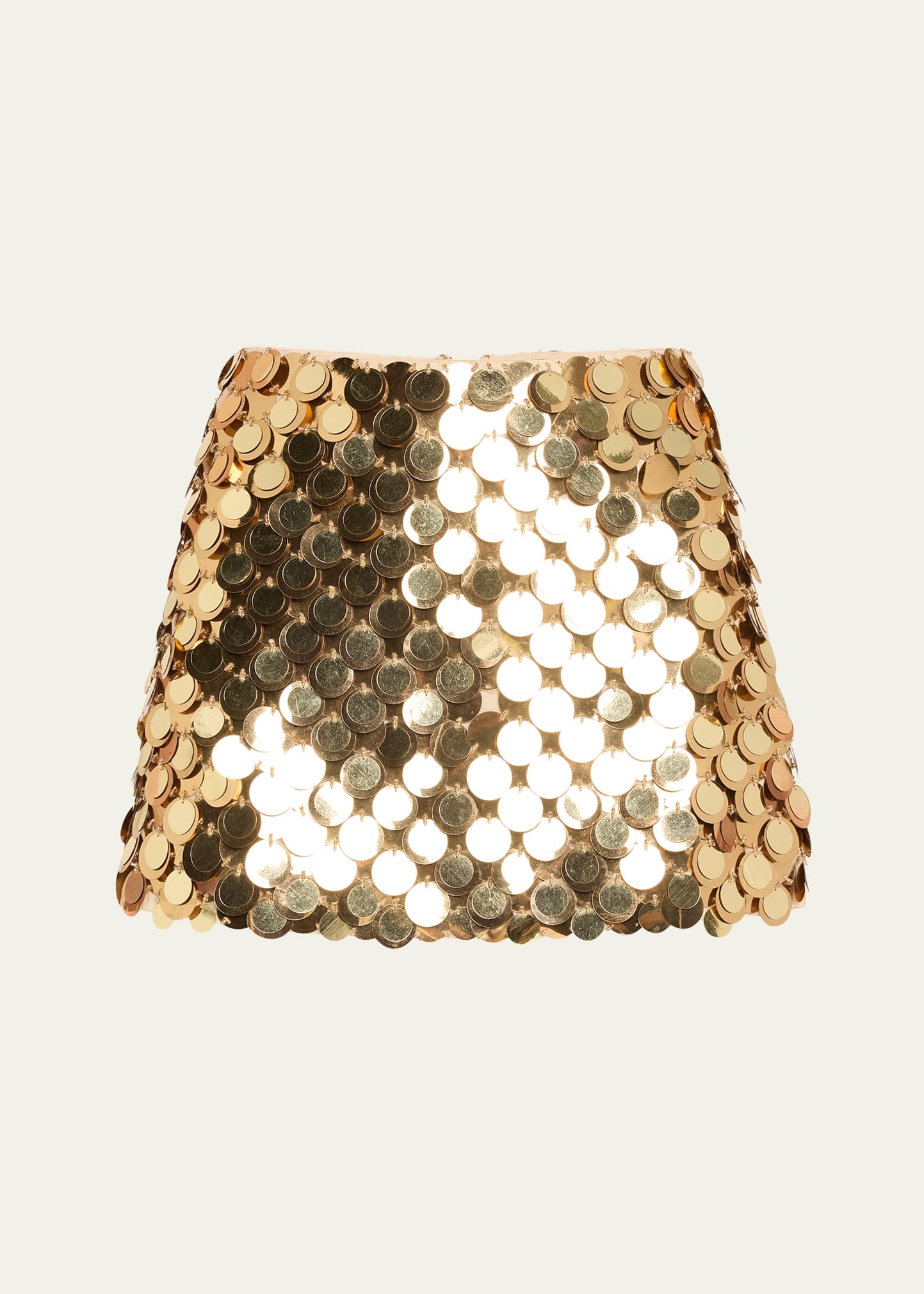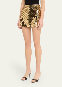 Alice + Olivia "Rubi" micro skirt embellished with layered metallic sequin paillettes Low rise Hem falls above the knee A-line silhouette Center back zipper Polyester/elastane Lining: Recycled polyester Dry clean Imported Online Inquiries: BGS21_T6JUS| Store Inquiries: #4993861
