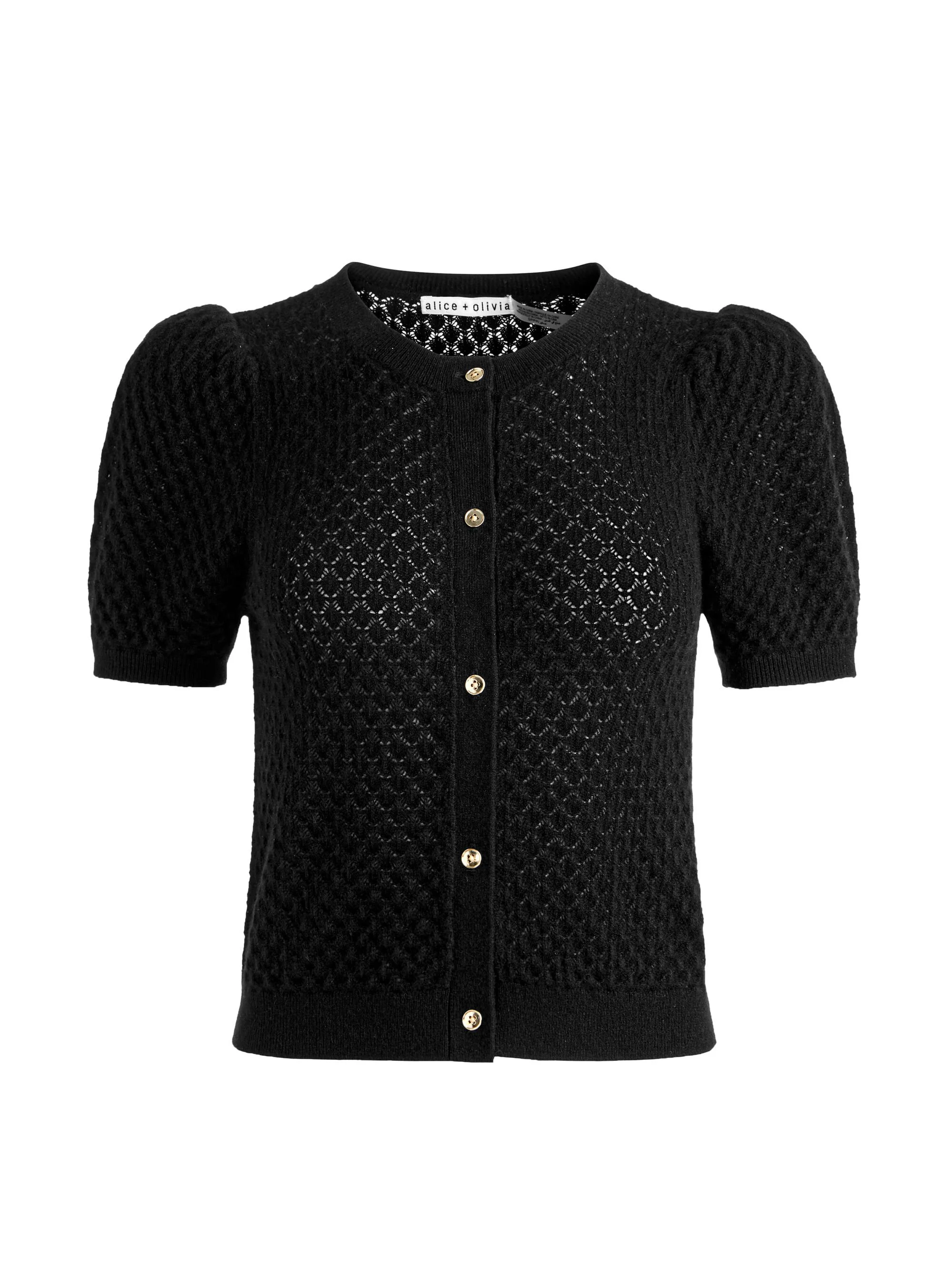 Sabine is the cropped cardigan you’ll find yourself styling a hundred ways. Knit in luxe cashmere with puff sleeves and a fitted silhouette, it has just enough detail to feel special without being fussy. The length makes it ideal over a tank or dress now, and later it slips under coats without adding bulk. Simple, versatile, and quietly indispensable, it will earn a permanent spot in your fall rotation! DETAILS - Cashmere cardigan - Pointelle stitch - Puffed sleeves - Fitted - Cropped - Front button closures - 97% cashmere, 3% nylon - Dry clean only - Imported FIT - Model is 5'10" and wearing a size XS - Length from the shoulder: 19" - Fits true to size, take your normal size