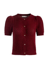 Sabine is the cropped cardigan you’ll find yourself styling a hundred ways. Knit in luxe cashmere with puff sleeves and a fitted silhouette, it has just enough detail to feel special without being fussy. The length makes it ideal over a tank or dress now, and later it slips under coats without adding bulk. Simple, versatile, and quietly indispensable, it will earn a permanent spot in your fall rotation! DETAILS - Cashmere cardigan - Pointelle stitch - Puffed sleeves - Fitted - Cropped - Front button closures - 97% cashmere, 3% nylon - Dry clean only - Imported FIT - Model is 5'10" and wearing a size XS - Length from the shoulder: 19" - Fits true to size, take your normal size