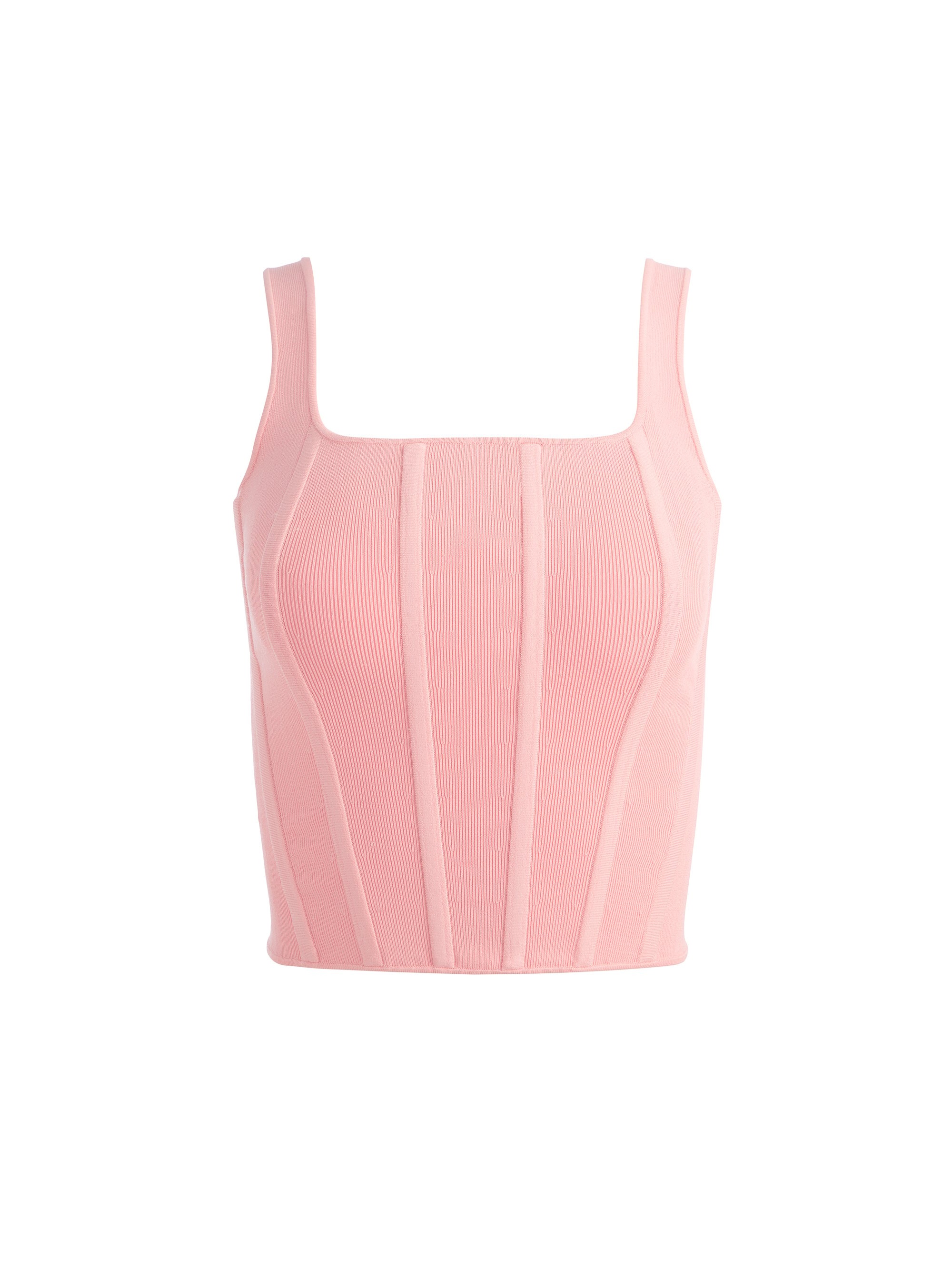 The structure of a corset, the comfort of a tank -meet the Sariah, the perfect going-out top. It’s made from a ribbed knit that both hugs your form and has stretch for some give. Internal corset paneling keeps everything in place. Highlight its square neckline with a statement necklace. DETAILS - Knit tank - Corset boning - Ribbed - 61% viscose, 36% nylon, 3% elastane - Dry clean only - Imported FIT - Model is 5'10" and wearing a size XS - Length from the shoulder: 19 1/2" - Fits true to size, take your normal size