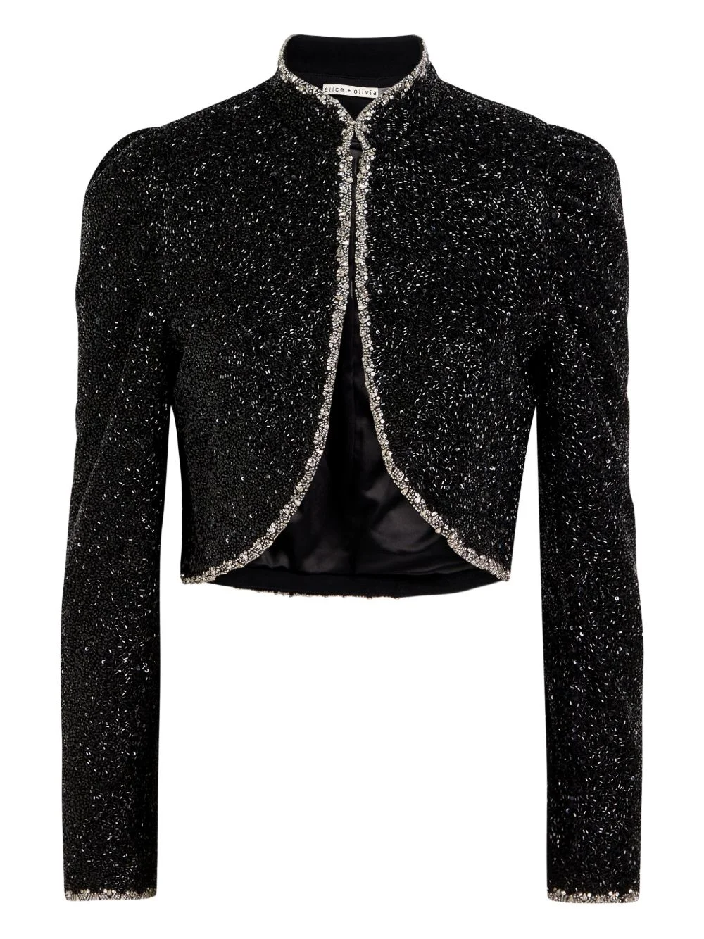 sequin-embellished cropped jacket Highlights - Black - All-over sequin embellishments - Cropped - Long sleeves - Open front Imported Composition Sequin 100%, Fabric 100% Washing instructions Read Manufacturer Guidelines
