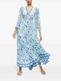 Sion Sunburst maxi dress Highlights - Light blue - White - Patterned floral print - V-neck - Three-quarter length sleeves - Fitted waistline - Pleated skirt - Flared hem - Rear zip fastening Imported Composition Polyester 100%