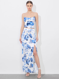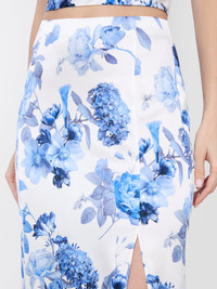 Cut from a fluid silk charmeuse in a column shape, our Stephine is the slip skirt of your dreams. It’s printed with romantic blooms that cascade down its hem. Fully lined for opacity and with a front slit and elasticized waistband for comfort, it’s super easy to wear. We love it with its matching top - the Valentina Corset. DETAILS - Maxi length - Front slit - Elasticized waistband - Back zipper closure - Lined - Digital all-over floral print - Stretch viscose charmeuse - 97% viscose, 3% elastane - Dry clean only - Imported FIT - Model is 5'10" and wearing a size 0 - Skirt length: 42 1/2" - Fits true to size, take your normal size