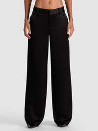 The Stu pant is our newest take on the perfect everyday trouser. Destined to be your go-to, they're cut from a luxe satin and fall into the most flattering wide leg. The relaxed fit and low rise up the cool factor. Pair with a blouse for the office and swap for a crop top for after hours. Stu can do it all. DETAILS - Baggy pant - Toyo shiny satin - Low rise - Wide leg - Belt loops - Front hook and zipper closure - 75% triacetate, 25% polyester - Dry clean only - Imported FIT - Model is 5'10" and wearing a size 0 - Front rise: 9 1/4" - Inseam: 34 1/2" - Fits true to size, take your normal size