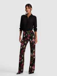 Go bold or go home. The Teeny pant takes the drama up a notch with its slim fit through the thigh, flared leg, and silky satin back crepe construction. The allover floral print is bold, bright, and unapologetically romantic- perfect for turning heads. Low-waisted and ultra-flattering, it’s a statement piece that speaks for itself. DETAILS - Bootcut pant - Printed matte satin crepe - Low rise - Slim fit - Front hook and zipper closure - 62% recycled polyester, 36% polyester, 2% elastane - Dry clean only - Imported FIT - Model is 5'10" and wearing a size 0 - Front rise: 9 1/4" - Inseam: 31" - Fits true to size, take your normal size