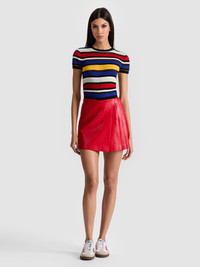 A bold twist on the classic mini. The Toni skirt brings drama in all the right ways, with a pleated hem that swishes as you move and a luxe vegan leather construction. The tailored waistband keeps it structured and flattering, while the flared shape adds a flirty edge. Pair it with a crisp shirt or a slouchy tee-either way, this skirt brings the heat. DETAILS - Mini skirt - Vegan leather - Pleated - Asymmetrical - Back zipper closure - 100% polyurethane - Dry clean only - Imported FIT - Model is 5'10" and wearing a size 0 - Skirt length: 14 1/4" - Fits true to size, take your normal size