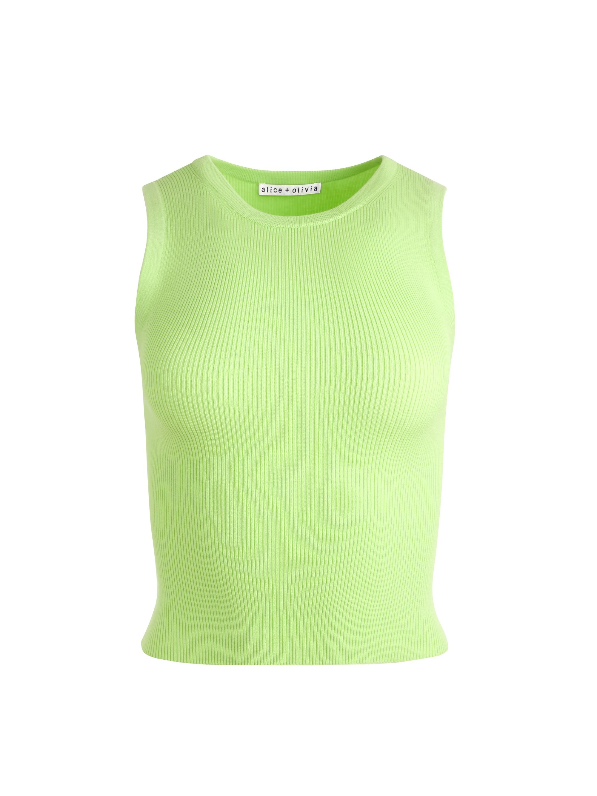 A great basic is hard to find, which is why we love this one so much. It includes a slim fit, high crewneck and super soft ribbed fabric. DETAILS - Ribbed tank top - Crew neck - Cropped - 69% cotton, 26% nylon, 5% elastane - Imported - Dry clean only FIT - Model is wearing a size Small and her measurements are 5'10", 32" bust, 23" waist, 34" hip - Total length: 19 3/4" - Fits true to size, take your normal size