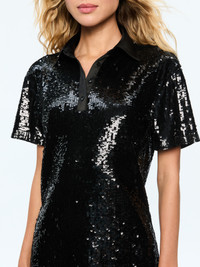 TREVA SEQUIN BOXY OVERSIZED POLO DRESS