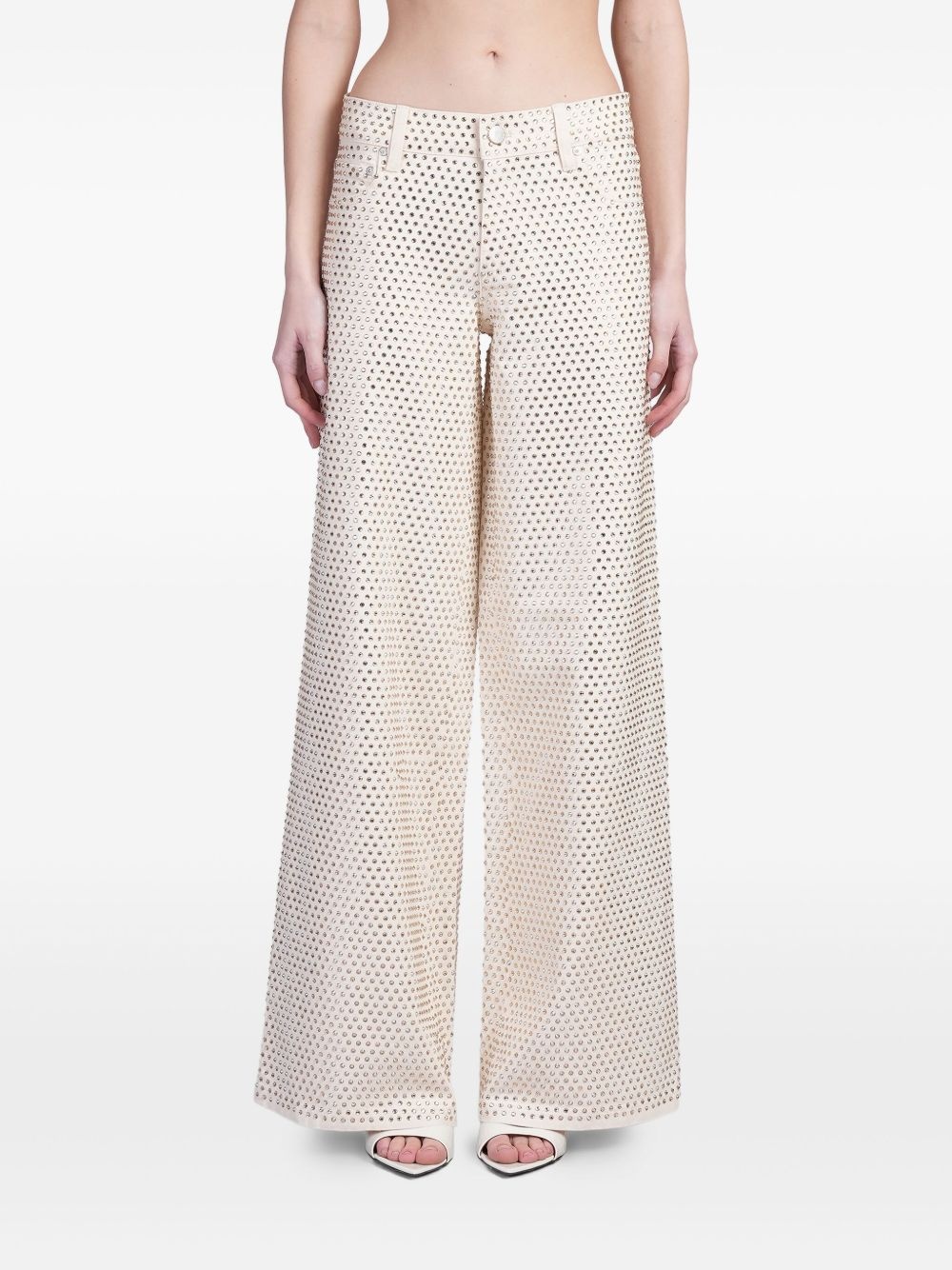 cotton jeans Highlights - Light beige - Front button fastening - Classic five pockets - Crystal embellishment - Wide leg Imported Composition Cotton 98%, Elastane 2%