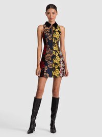 Our new take on the Velia comes with a twist: a removable collar that shifts the look from sweet to playful in an instant. Paneled construction of this jacquard mini gives it shape, while a front zipper adds a hint of edge. It’s a piece that doesn’t ask you to choose between polished and irreverent- because it does both effortlessly. DETAILS - Mini dress - Paneled floral jacquard - Shift fit - Removable collar - Front zipper closure - Back zipper closure - 100% polyester - Dry clean only - Imported FIT - Model is 5'10" and wearing a size 0 - Length from the shoulder: 33 1/2" - Fits true to size, take your normal size