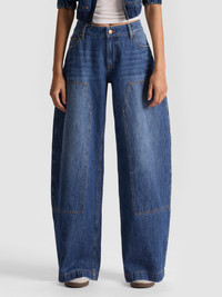 Workwear gets a feminine twist in the Andie Jean. With its low rise, barrel-leg silhouette and patch details, this pair brings laid-back utility to your denim rotation. Made from 100% cotton in a versatile medium wash, it’s relaxed, cool, and effortlessly easy-just add a fitted tee or its matching Mateo Jacket and you’re good to go. DETAILS - Carpenter jean - Relaxed fit - Low rise - Barrel leg - Belt loops - Front button and zipper closure - 100% cotton - Turn inside out and machine wash on cold with like colors - Imported FIT - Model is 5'10" and wearing a size 25 - Front rise: 9 1/2" - Inseam: 30 3/4" - Fits true to size, take your normal size